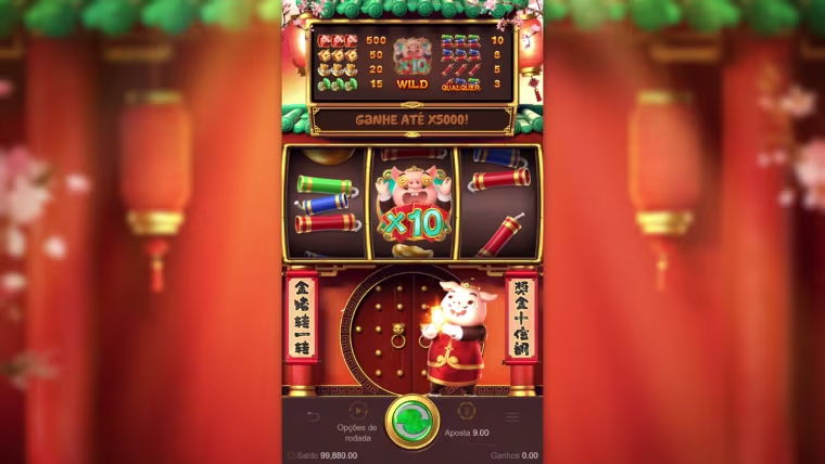 - Sr Piggy: Na figura de um porquinho chinês, ao existirem 3 repetições, o jogador será premiado com 500x.